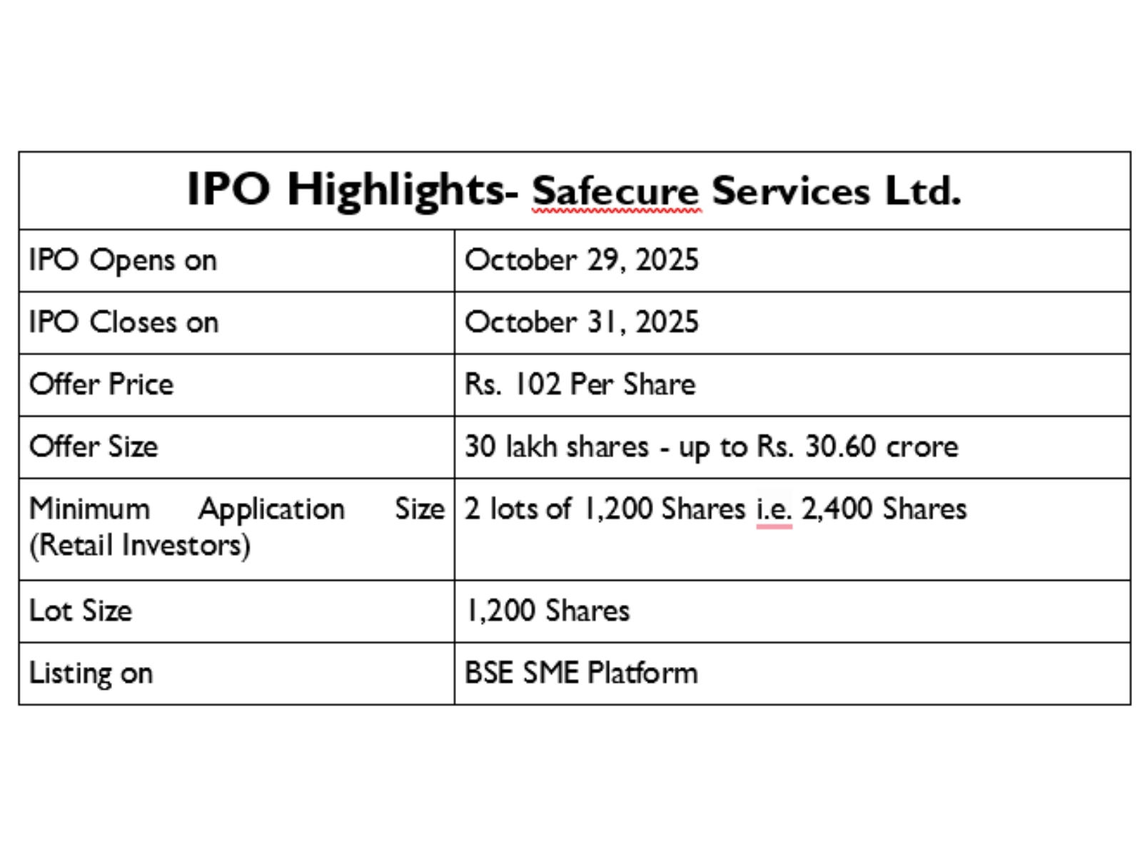 Safecure Services Ltd plans to raise up to Rs. 30.60 crore from public offer, IPO opens on October 29, 2025